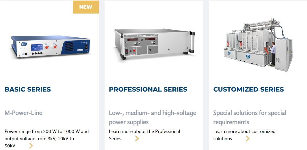 FuG公司位于慕尼黑附近,Guth公司位于斯圖加特附近,兩家公司的產(chǎn)品組合包括各種高壓產(chǎn)品,涵蓋了從粒子加速器系統(tǒng)到實驗室電源的應(yīng)用。